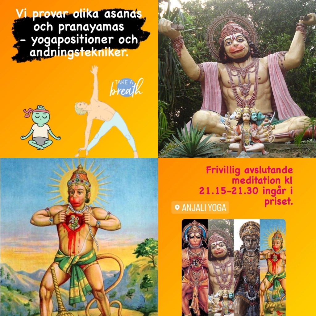 Sist men inte minst har jag haft äran och glädjen att hålla yoga för en liten grupp män under fyra måndagskvällar i maj månad. Många kvinnor har ju sedan länge hittat till yogasalarna, men vad är det som säger att yoga bara är för kvinnor? Männen är värda yoga och har lika stor nytta av det! Så min glädje var stor när fyra modiga män ville testa yoga hos mig! Jag hoppas att vi får till en fortsättning till hösten! I Hanumans anda, den indiske guden med det öppna hjärtat och det stora modet och med humor och självdistans gör vi Yoga för dig som är man!