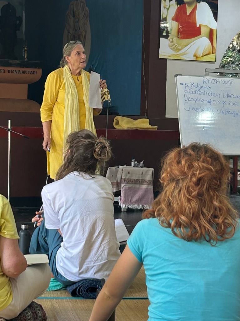 Enligt yogaläran påverkas våra sinnen av vad vi äter. Vegetariskt är bra, men det räcker inte. Den strikt yogiska dieten är väldigt sparsmakad och tillåter varken lök, vitlök eller chili, inget fermenterat eller picklat – sådant som den indiska maten annars är präglad av! Det gladde mig att vår ”fröken”, Padmavati, tog upp att det även finns etiska skäl till den yogiska dieten och då nämnde t ex klimatpåverkan.